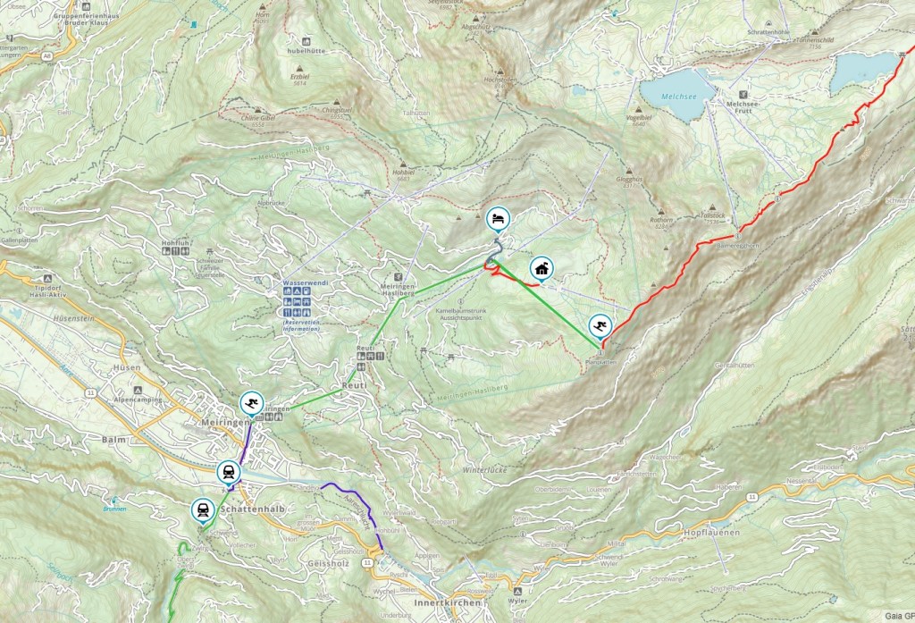 We will stay another night at our private Alpine Hutte, and have to share rooms, but just with our group. We also need to buy food for the night and next day and bring up with us. We can ride the lift up, then hike the final mile about 500ft climb. It is located between Mägisalp and Planplatten.