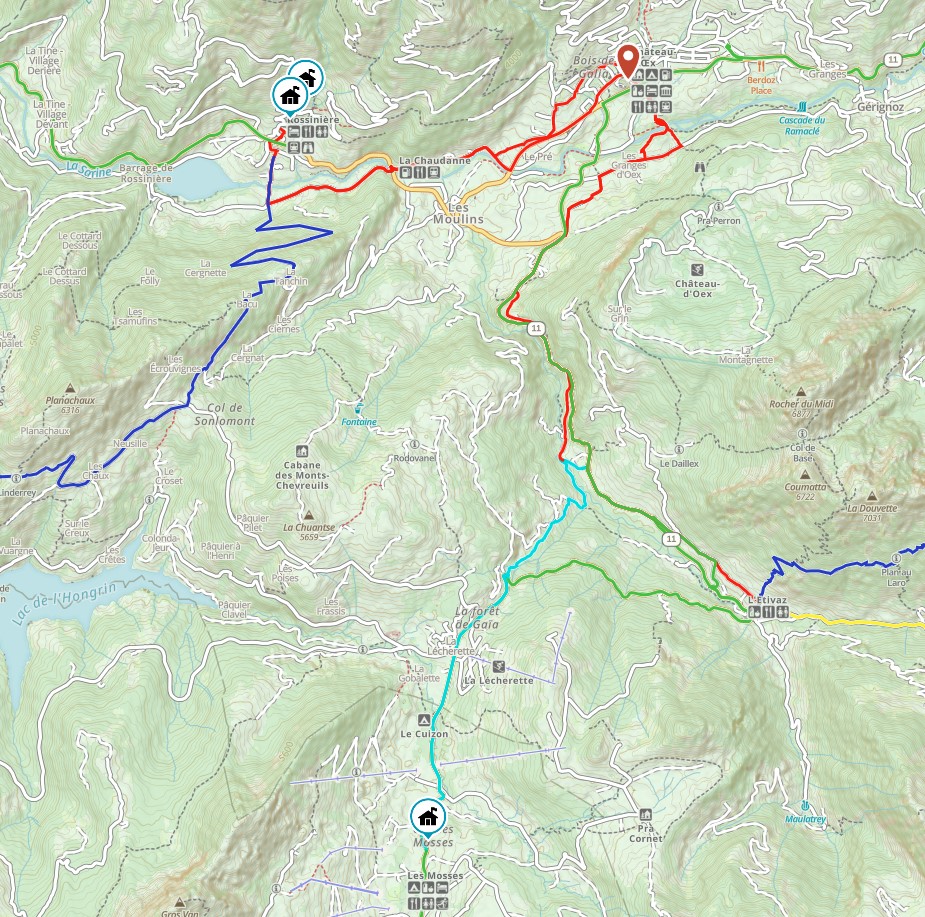 We have a beautiful hiking day along rivers and small villages in this Gruyere Cheese Region. Plan on hiking via Chateau-d’ Oex. Since our next day will begin in L’ Etiva, I tried to find a place to stay there, but we will have to take a bus or hike down and overnight at Fleurs des Alpes in Les Mosses and enjoy a lovely local dinner cooked for us. (Check back later for updates)