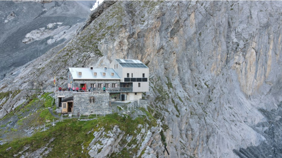 Corrie and Thom will spend their first night at the Gspaltenhornhutte after a 7,000ft climbing day.